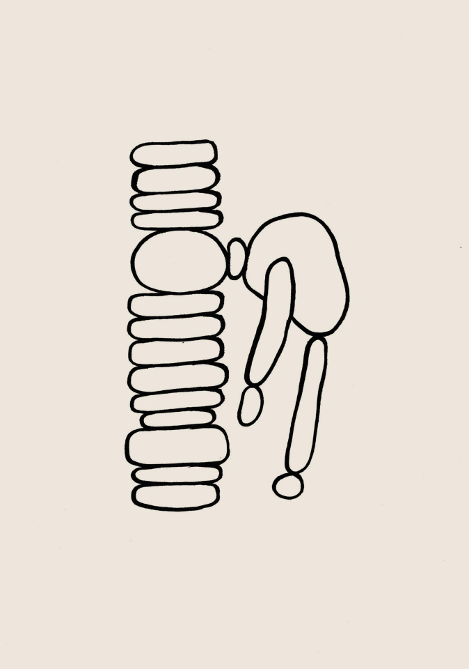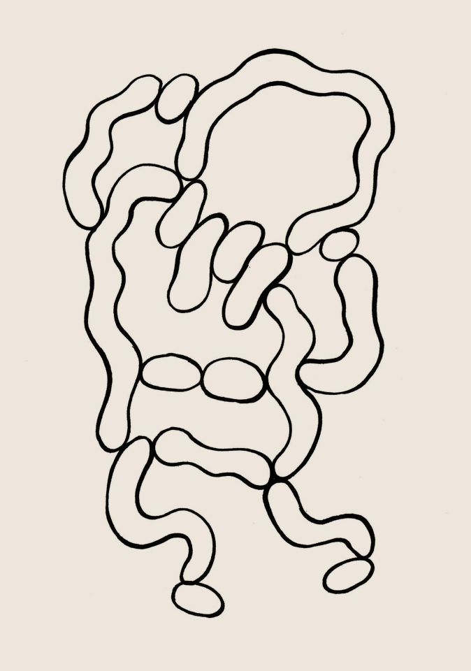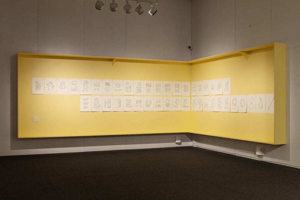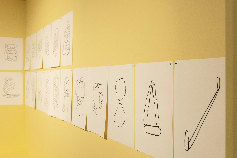The work “Notes” consists of 44 riso prints – selected and redrawn drawings made as visual notes during lectures in the Professional Doctoral Programme at the Art Academy of Latvia. These notes were made primarily simply to draw and keep the hand moving: “What we call ‘conning’ implies that our knowledge is departing; since forgetfulness is an egress of knowledge, while conning substitutes a fresh one in place of that which departs, and so preserves our knowledge enough to make it seem the same.” (Plato "Symposium"). And drawings were also made in order to concentrate, remember what was being said more clearly, and think along actively. While drawing, I look for ways to translate speech into images, trying to stay on the threshold between the abstract and the recognizable. Moving forward from page to page, following the speaker’s pace and catching the next thought, drawing demands an exceptionally high level of concentration. There is a fundamental difference between language and image – language strives for precision, while the image is ambivalent and open to interpretation. A viewer won’t be able to use these notes to study for an exam, yet the laconic, distilled images arranged in sequence reveal the flexibility of perception and provide fertile ground for a new narrative.